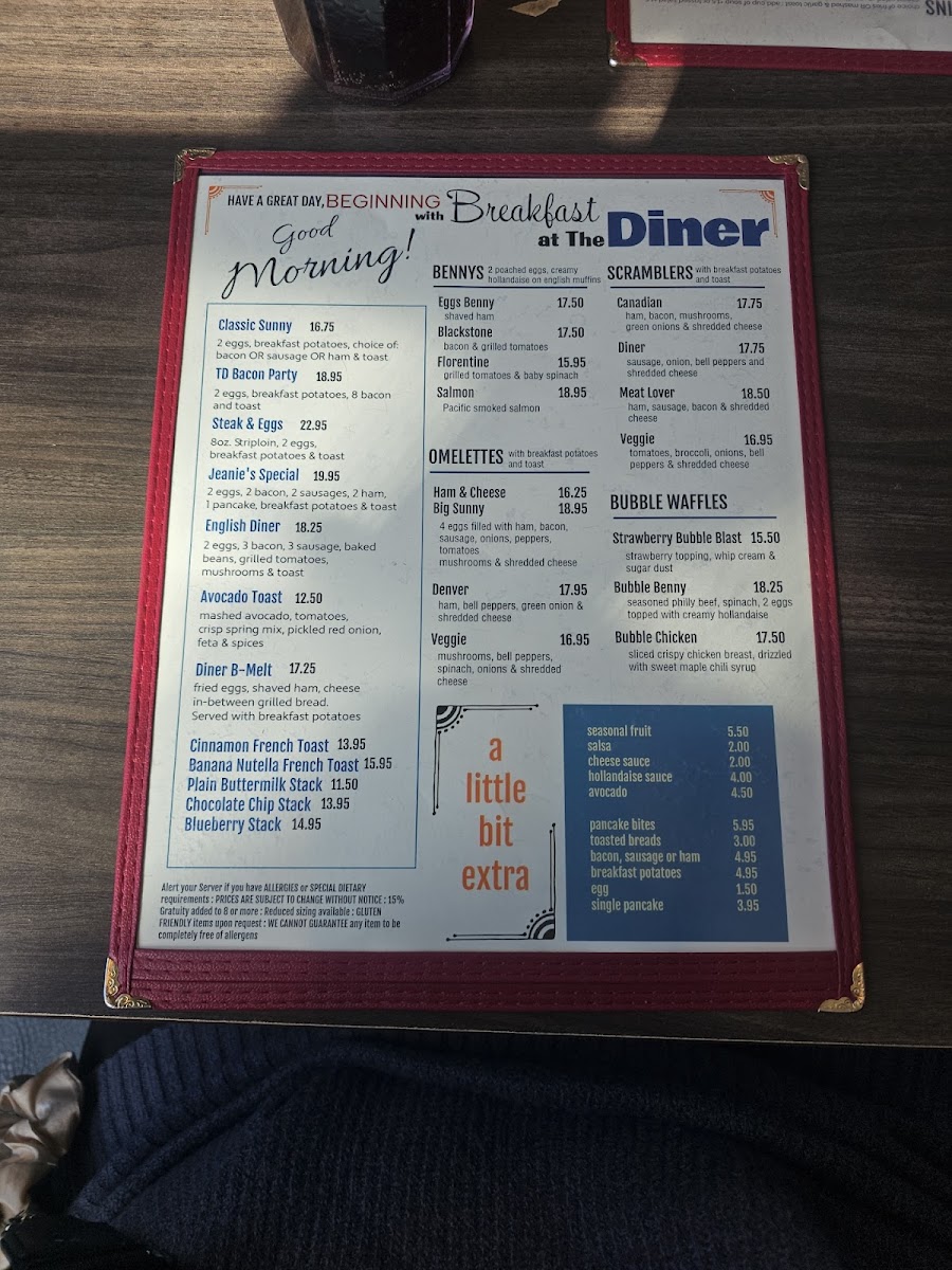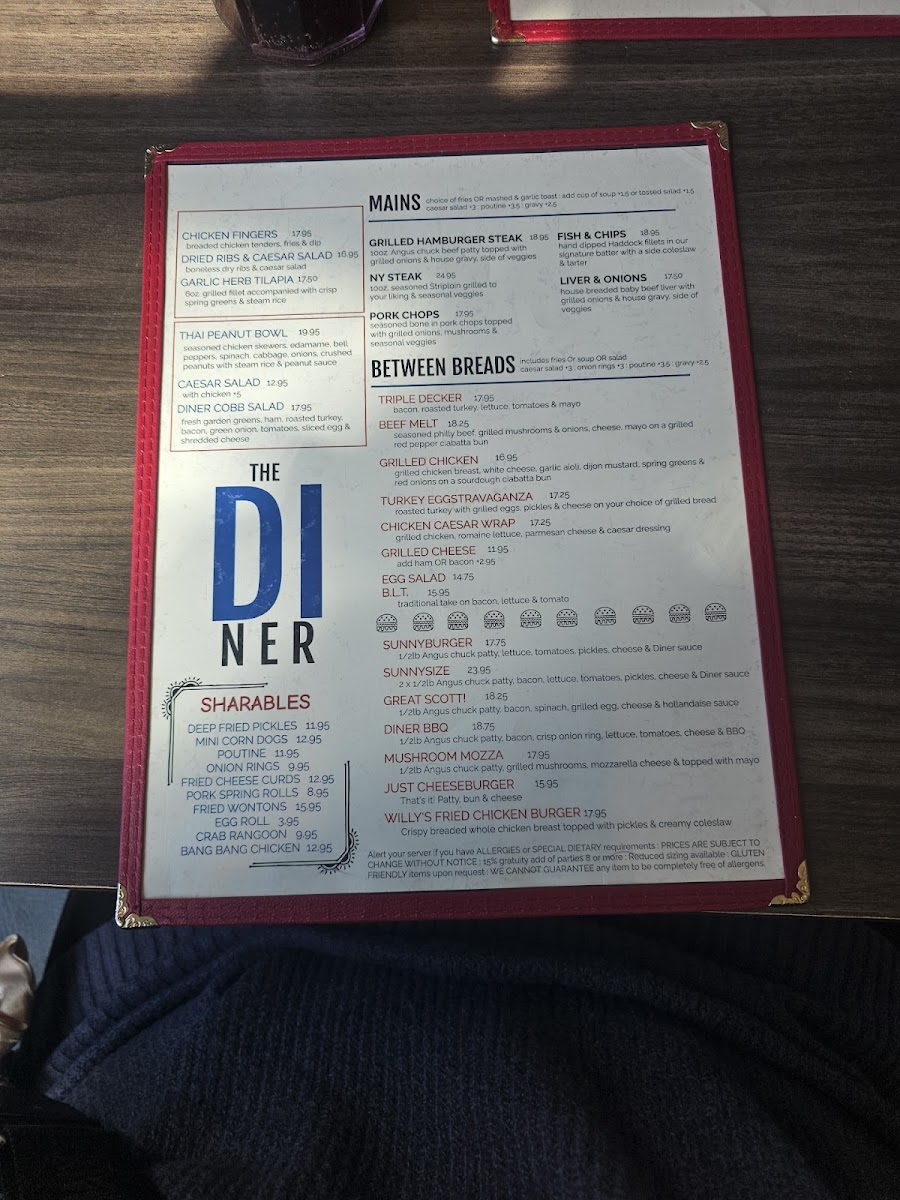 At The Diner, you’ll find a menu that caters to every craving, whether you’re in the mood for a hearty breakfast, a satisfying lunch, or a comforting dinner. Nestled in the heart of Lloydminster, this cozy spot offers a range of delicious options, from classic diner favourites like fluffy pancakes and crispy bacon to fresh, juicy burgers and tasty sandwiches. The menu is designed to bring familiar flavours with a touch of comfort, making it the perfect place to unwind and indulge. Whether you’re stopping by for a quick bite or settling in for a leisurely meal, The Diner Menu has something for everyone, all served up with a friendly smile and a welcoming atmosphere.